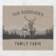 Family Cabin Deer Pine Tree Forest Burlap Labels