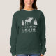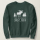 Women's sweatshirt with your personalised family name and cabin, cottage or other desired text along with an established date and location. This custom design features rustic style typography with artwork of a moose and pine trees silhouette in white. To see more designs like this, feel free to visit my store here at "Zazzle.com/Rustic_Charm". Thanks.