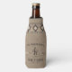 A southwest themed bottle cooler with your personalised family name and cabin, cottage or other desired text and it's established date. This custom design features rustic typography with southwestern style artwork of native american tribal patterns around a cactus and mountain vista silhouette, all on a faux kraft print. To see more designs like this, feel free to visit my store here at Zazzle.com/Rustic_Charm. Thanks.