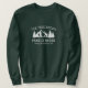 Men's sweatshirt with your personalised family name and cabin, cottage or other desired text. Features include a custom designed white silhouette of rustic trees and mountains.