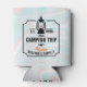 Cool abstract pink and blue marble swirls background with camping symbols illustration and customisable text template for family reunion.