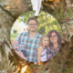 Upload your favourite family photo to the front of this pretty Christmas Ornament. On the back make sure it says the right date otherwise edit it in the personalise area. Background is pretty blue bokeh pattern and snowflake.