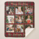 Family Christmas Plaid Gold Custom Photo Collage Sherpa Blanket