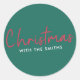 Simple, stylish "Christmas with the <your name>" quote stickers in modern minimalist typography in festive red and white on a green background. The design can be easily personalized with your family name(s), year or own special greeting for super cute bespoke holiday vibes!