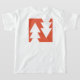 The back of the T-shirt presents a minimalist graphic with abstract Christmas trees in different sizes, creating a modern art-inspired aesthetic. The simplicity of the design on the back contrasts with the intricate pattern on the front, offering a clean and contemporary look.