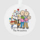 Family Christmas Twin Girls, Boy, Dog, Mum and Dad Ornament