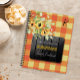 Vintage rustic trendy farmhouse style personalised recipe organiser cookbook blank journal with barn wood, rusty orange terracotta, and yellow gingham pattern and watercolor sunflowers. ++++++++++ Personalise it with your personal or family monogram, name and your text! +++++++++ It can be a modern personal recipe book for your kitchen, a family cookbook, or a beautiful keepsake gift for a bride, friend, or chef, for weddings, bridal shower, birthday or Christmas.