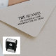 A simple and clear self inking stamp with your last name and street address. Perfect for inking the return address on thank you notes and letters.