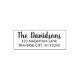 A simple and clear self inking stamp with your last name and street address. Perfect for inking the return address on thank you notes and letters.