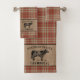 Family Farmhouse Rustic Cow Red Plaid Burlap Bath Towel Set