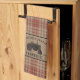 Beautiful rustic themed kitchen towels, featuring your family name and "farmhouse", ranch, homestead or other desired text and an established date. This unique, custom design features hand drawn artwork of a vintage farm tractor on a burlap style print backing and surrounded with country red and khaki plaid. To see more designs like this, feel free to visit my store here at "Zazzle.com/Rustic_Charm". Thanks.