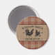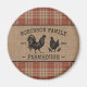 A beautiful, rustic themed magnet, featuring your family name and "farmhouse", ranch, homestead or other desired text and an established date. This unique, custom design features hand drawn artwork of a rooster, hen and chicks on a burlap style backing and surrounded with beautiful vintage country plaid in soft shades of red. A charming addition to your vacation home decor. Feel free to visit my designer store to see more items and designs like this. Thanks..