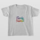 The t-shirt features the text "Family Foundation" in a vibrant rainbow gradient. The letters are bold and curve slightly across the centre of the shirt, creating a dynamic and eye-catching design.