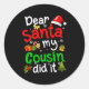 Family Funny Dear Santa My Cousin Did It Christmas Classic Round Sticker