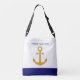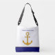 Elegant family golden anchor on navy blue and white Tote Bag. Family traditions text can be personalised.