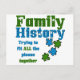 'Family History, trying to fit all the pieces together' - and the text is written in puzzle pieces with a few pieces missing in the words and tumbling down the design. Clever design for anyone working with the family tree and roots of their ancestors.