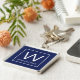 An elegant monogram design on navy blue background with square border, personalised with your family initial and first names...