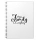 Family Is Everything Quote Notebook. Black typography with swirl. Design from Simple Living.