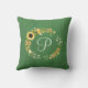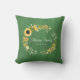 Elegant personalised family name and monogram farmhouse throw pillow with a chic handwriting calligraphy script and sunflowers wreaths on a green vibrant country style barn wood background. +++++++++++++ Easy to customise with your text on both sides. +++++++++++++ Can be a chic family rustic accent decoration, or a gift for housewarming, family anniversary, Christmas.