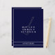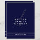 Custom double sided recipe divider page for a navy and white cookbook recipe binder. Features family kitchen name with a cooking spatula utensil. A simple modern minimalist design in a classic navy blue and white colour palette with customisable text presented in stylish font.