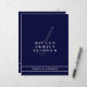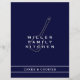 Custom double sided monogrammed recipe divider for a navy blue family cookbook binder. Features family kitchen name with a cooking spatula utensil. One design of a matching set. A simple modern design in a classic navy blue and white colour palette with customisable text presented in simple font.