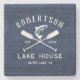 Family Lake House Rustic Navy Blue Wood Stone Coaster