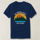 Beautiful family lake vacation t-shirts featuring the pretty blue waters under the forest of trees and cool orange sunset. Cute camping trip matching tees for your nature outing or wilderness group.