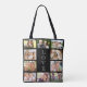 A photo collage black tote bag to celebrate your family, friends, pets, etc. Personalise with ten photos. "LOVE" is written down the middle in elegant white typography.