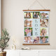 An elegant and unique light mint green hanging tapestry featuring a 10 photo collage of your family, pets, memories, etc., and "LOVE" written in the middle in elegant typography.