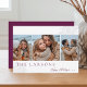 Send holiday greetings to friends and family in chic style with our elegant photo collage cards. Designed to accommodate three of your favorite photos arranged side by side, this chic minimalist card features your family name in rich plum purple lettering, with "Happy Holidays" in ornate classic script alongside the year. A pair of pale snowflake silhouettes at the corners completes this modern, minimal design.
