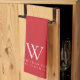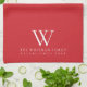 Family Monogram Elegant Flame Scarlet Red Tea Towel