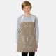 Custom monogram and name with family established year elegant chic country farmhouse style dark beige jute burlap (PRINTED) apron for kids. +++++++ A modern keepsake gift for housewarmings, Thanksgiving, Christmas, birthday, family reunion, or any other occasion.