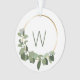 This Christmas ornament is a special family keepsake with a place to personalise with your photo and family last name initial. Decorated with a minimalist green foliage and white flower wreath.
