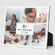 A Beautiful personalized family photo collage plaque to display and cherish your special family memories. Our design features a simple 5 photo collage grid, with your family's last name designed inside a white plaque style label. Customized with established date.