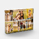 Family Name 5 Photo Collage Script Photo Block. Create a unique and fun family themed photo block utilising this easy-to-upload photo collage template with 5 pictures in various shapes and sizes, both horizontal and vertical, to accommodate a wide range of photographic subjects and a modern calligraphy script title for a family name or other custom text that you can change the type font style, size, colour and placement as well as the text shadow colour and background colour in EDIT. ASSISTANCE: For help with design modification or personalisation, contact the designer BEFORE ORDERING via the Zazzle Chat MESSAGE tab below or email makeitaboutyoustore@gmail.com.