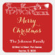 Family Name Address Merry Christmas Red Gold Santa Square Sticker
