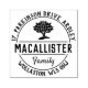 Rubberstamp for a family. Add family surname as well as address and contact number et cetera. Family Name and Address with a stylised Family Tree Motif. Big Surname plus Two Lines of Address circling the Image. A family rubber stamp for all kinds of stationery items, envelopes, packages etc. Stamp your return address easily and stylishly.