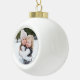 Custom-designed ceramic ball ornament featuring custom photo with family name and year.
