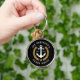 A stylish nautical style metal keychain with your personalized family name and beach house, lake house, or other desired text and established date. Features a custom designed boat anchor with gold style laurel leaves and a star on black or easily customize the base color to match your current decor or theme. Great for accenting the keys to your family's holiday vacation home.