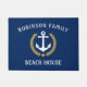 Family Name Beach House Anchor Navy Gold Laurel Doormat