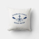 Inviting stylish throw pillow cushion featuring a custom designed nautical anchor and crossed oars with your personalised family name and beach house text in navy blue on white or easily customise colour to match you current decor theme.