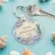 This personalised family beach house keychain features an underwater coral reef with sea life- seahorse, crab, starfish and shells.