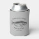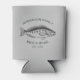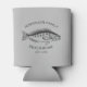 Keep your favourite beverages cold with this custom family name beech house can cooler. The text can be changed to whatever you like so it's perfect for you Lake House too. Makes a great cabin, lake house or beach housewarming gift. Background is medium grey while the fish design and text are a dark grey colour.