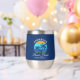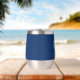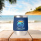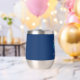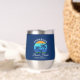 Family Name Beach House Summer Palm Trees Sunset Retro Style Wine Tumbler. Personalise with your family name, location and more. Navy Blue Background or choose your colour.