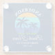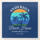 Family Name Beach House Sun Palm Trees Blue Glass Coaster
