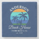 Family Name Beach House Sun Palm Trees Blue Stone Coaster