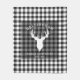 Family Name, location, and year established Gingham black white plaid with deer head silhouette fleece blanket