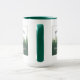 A beautiful, rustic themed two tone large coffee mug with your personalised family name and cabin, lodge or other desired text and it's location. This custom design features artwork of a pine tree forest silhouette in shades of forest and hunter green. Feel free to visit my designer store to see more items and designs like this. Thanks.