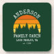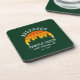 Rustic Pine Trees Summer Retro Sunset Family Name Cabin Forest Green Coasters. Personalise with your family name, location, year or date and more.