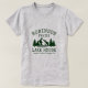 Women's t-shirt displaying your personalised family name with "lake house" and lake name, location or other desired text. Features include a custom designed silhouette of rustic trees, mountains and lake. Feel free to visit my designer store to see more items like this. Thanks.